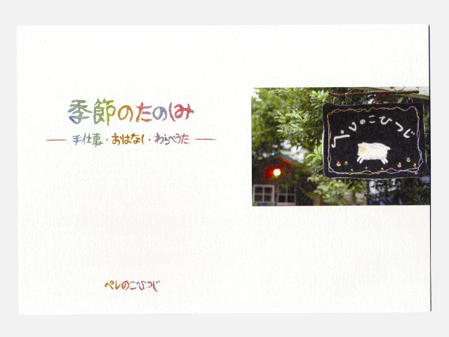「季節のテーブル(羊毛の人形が素晴らしい)」を囲むように<手仕事><おはなし><わらべうた>がちりばめられている。1月から12月まで卓上において、壁に貼って楽しめるカレンダー。